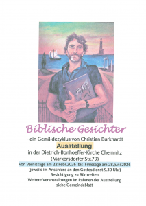 Die Ausstellung "Biblische Gesichter" wurde von Pfr. i.R. Christian Burkhardt gestaltet. Er möchte mit seinen Bilder zu einer möglichst lebendigen Neubegegnung mit biblischen Geschichten anregen.